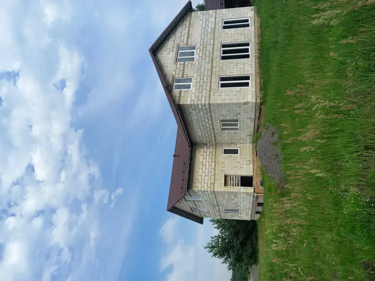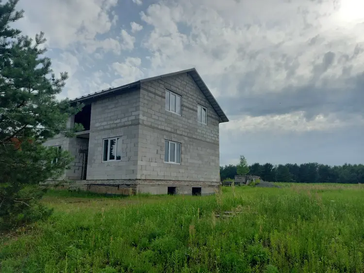 Дом двухэтажный (незавершённое капитальное строение) 2023 г из газосиликатных блоков. Высокий ленточный фундамент, сухой подвал на весь дом 2м высоты. Хорошие окна ПВХ, металлочерепица, ж/б плиты перекрытия. Выделенные: комнаты, кухня, гостиная, санузлы, гардеробная. Балкон 17м² в виде большой лоджии, который, при желании, можно преобразовать в отдельную комнату. Есть проект дома.