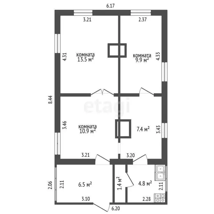 54.4 м2