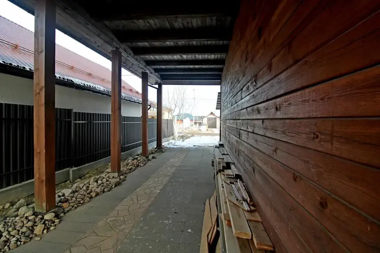 - Также залит мощный фундамент под баню 3.10 м. на 4.10 м., на котором временно построен дощатый сарай.