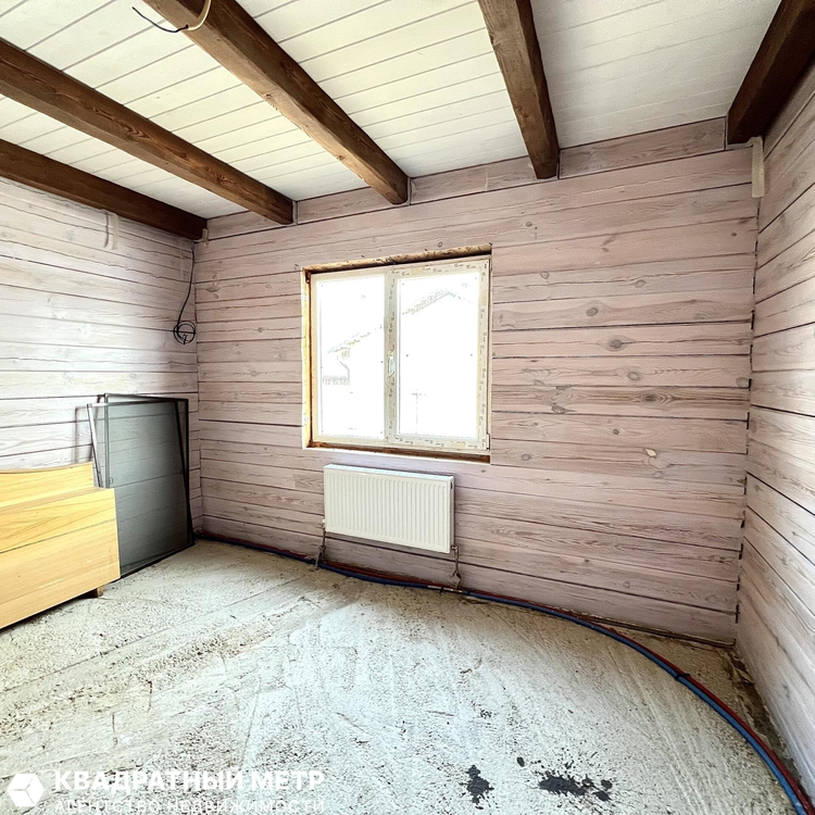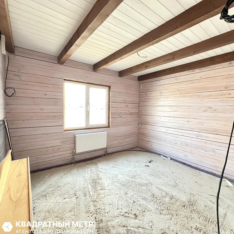 В жилых комнатах черновая стяжка, подготовлена под укладку доски, доска в наличии, остается новым хозяевам. На кухне, в коридоре и санузле установлен теплый пол. Произведен монтаж радиаторов.