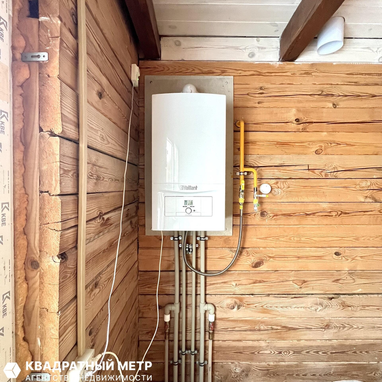 В дом проведен газ, вода, свет 220 и 380 Вт., сделана канализация на два колодца. Установлен двухконтурный газовый котел Vaillant.