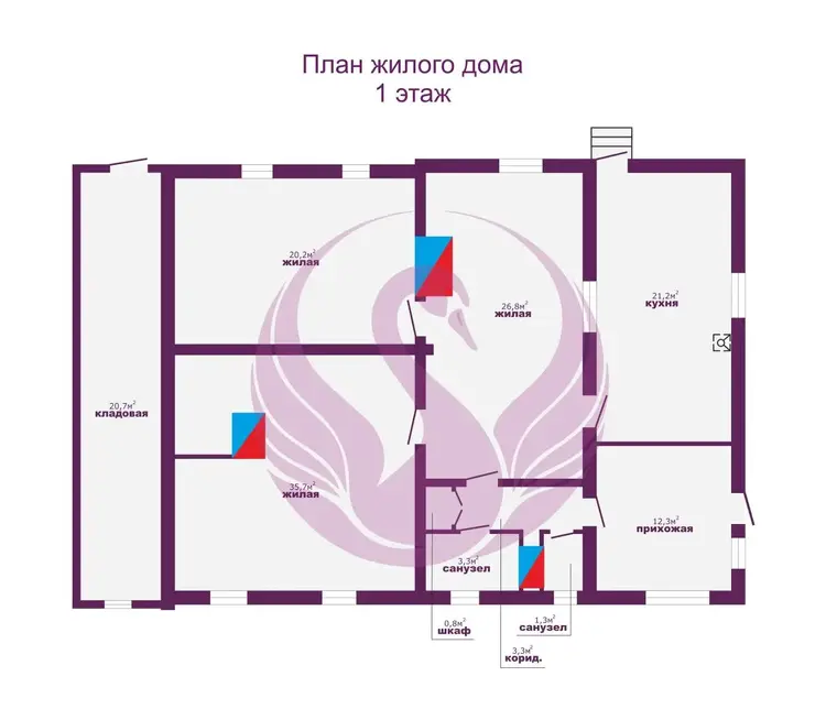 - В доме 3 комнаты площадью 20,2 м2; 26,8 м2 и 35,7 м2, которые вы сможете обустроить по своим предпочтениям.