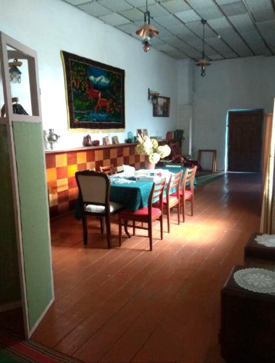 Участок огорожен частично с трех сторон). Возле беседки оборудовано место для костра. Туалет уличный + биотуалет. В доме частично сделан ремонт и оформлен интерьер в ретро стиле. Есть большой зал, где можно сделать, например, игровую (бильярд, теннис и др.)