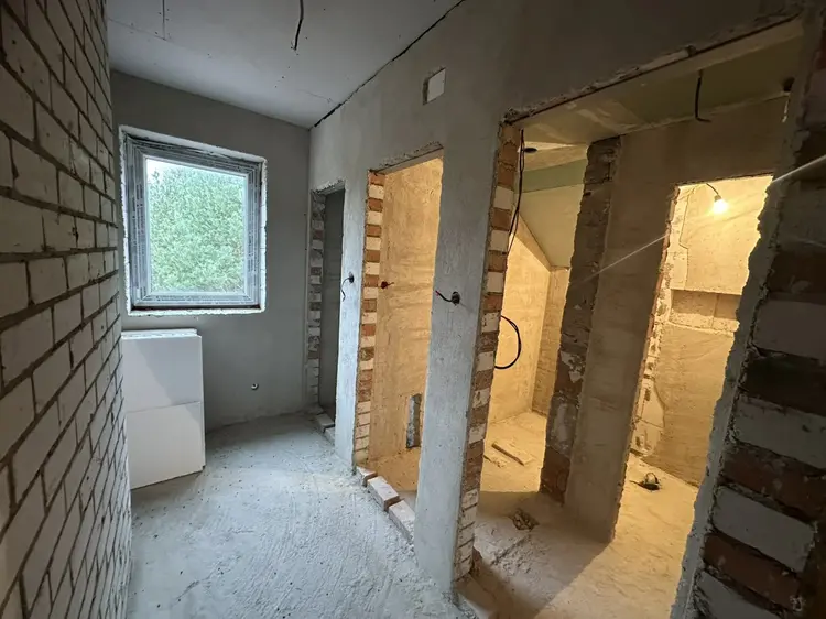 Дом блочно-кирпичный, крыша- металлочерепица, на полу черновая стяжка, лестница бетонная, канализация септик, электричество 220 и 380 Вт, имеются технические условия на использование 10 кВт для обогрева здания, окна ПВХ, отопление твердотопливный котел.