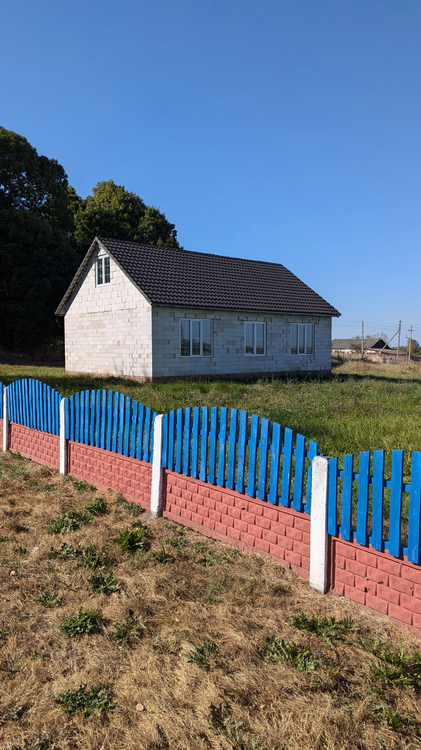 Фундамент фбс 1.2 метра (2*60см) + армопояс + нулевая отметка из красного кирпича. Стены газосиликат 30 см несущие, перегородки 10 см, окна ПВХ теплоизоляционные, модульная черепица ( Германия ). Черновой потолок , черновая штукатурка, канализация и черновые полы готовы по дому. Можно выполнить теплый пол по всему дому . Канализация центральная с проектом. Трёхфазный ввод на участке, разрешение на электрокотел. Рядом газ и вода проходят. По желанию можно завести их. Участок в 25 соток в самом центре аг.Лукский, напротив церкви.