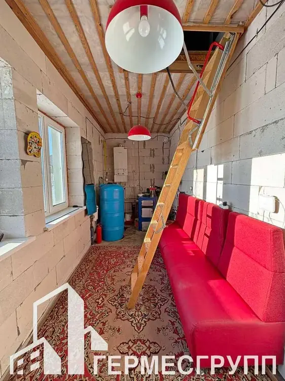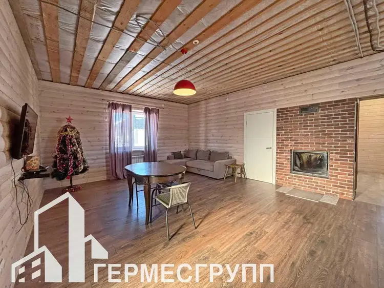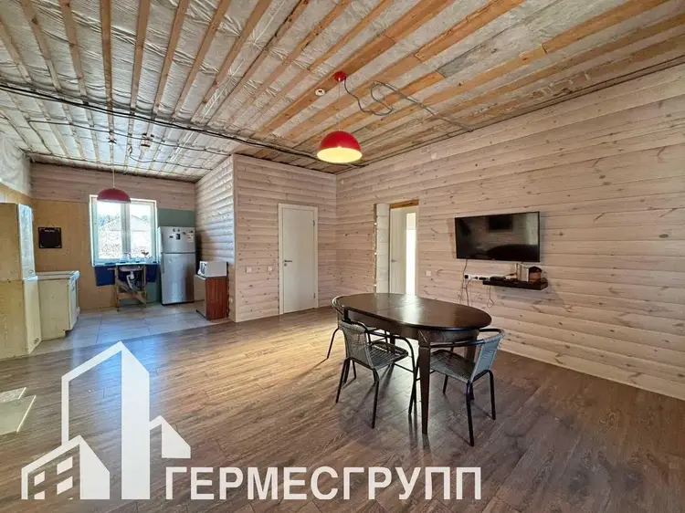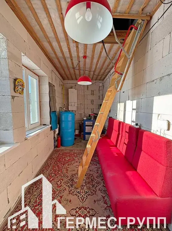 Дом построен из блоков, утеплен и отделан внутри блок-хаусом, создавая атмосферу загородного уюта. На полу – качественный ламинат, а в зоне кухни – практичная и стильная плитка. В комнатах установлены натяжные потолки. Ванная комната, отделанная плиткой с натяжным потолком, оборудована бойлером на 80 литров.