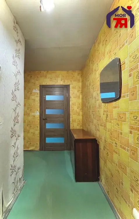 - На полу в квартире уложен линолеум, который может быть легко заменён на более подходящее покрытие в ходе ремонта.