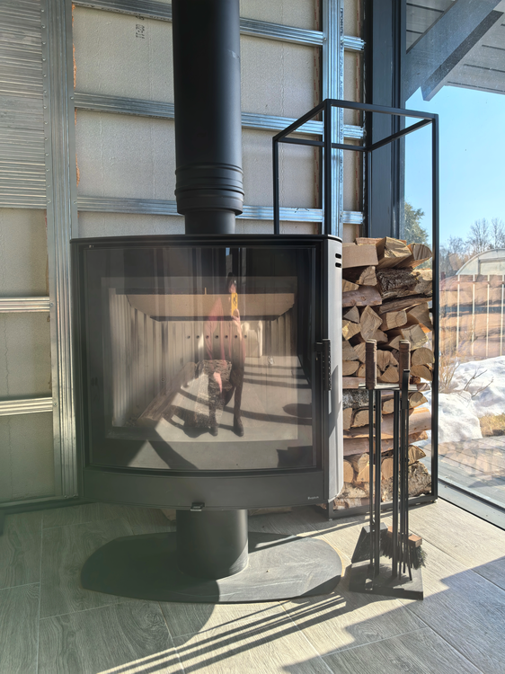 Отопление: электрическое (дешевле и безопаснее, чем газ: котёл Protherm 9кВт, тёплые полы. Всё рассчитано исходя из коэффициентов теплопотерь дома. Всё управление через модуль управления, с возможностью удалённого управления, через Wi-Fi. Даже без включённого отопления при наружной температуре более -25 градусов в доме температура со знаком «+») Панорамный камин Hajduk (Польша) 9кВт: широкоугольное арочное стекло создает впечатление близости к живому огню, регулятор позволяет управлять мощностью устройства в пять ступеней (без включённого отопления в состоянии полноценно отопить данный дом)