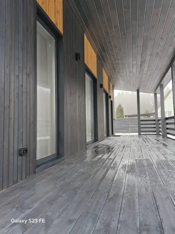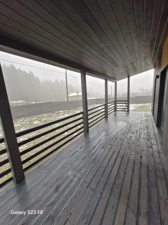 Дом строился для себя, всё делалось с вниманием к деталям: качественный фундамент, хорошие пиломатериалы (весь материал каркаса техсушки!!!, обработка дерева - антисептики Lignofix Stabil extra и Снеж.), отличное утепление (200мм по кругу, кам. вата Knauf), грамотно исполненная крыша, соблюдение всех циклов и этапов при изготовлении пирога, передняя часть дома и пошива крыши – лиственница!