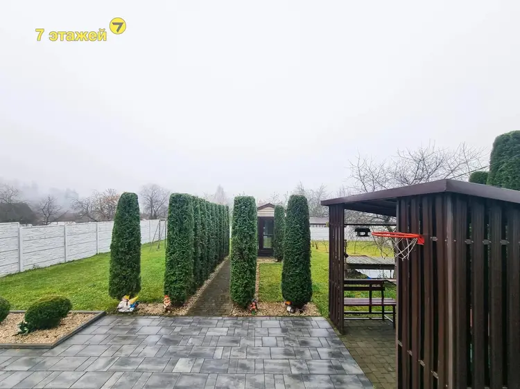 Ухоженная территория с туями и декоративными насаждениями