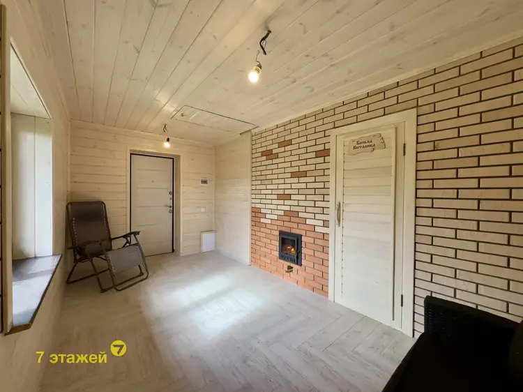 На первом этаже расположены: гостевая комната, просторная кухня, большая гостиная с выходом на террасу, коридор, санузел, отдельная котельная.