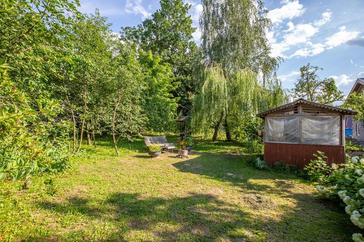 На участке расположены: хоз. постройка, беседка, теплица и место для барбекю.
