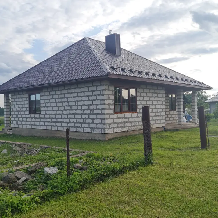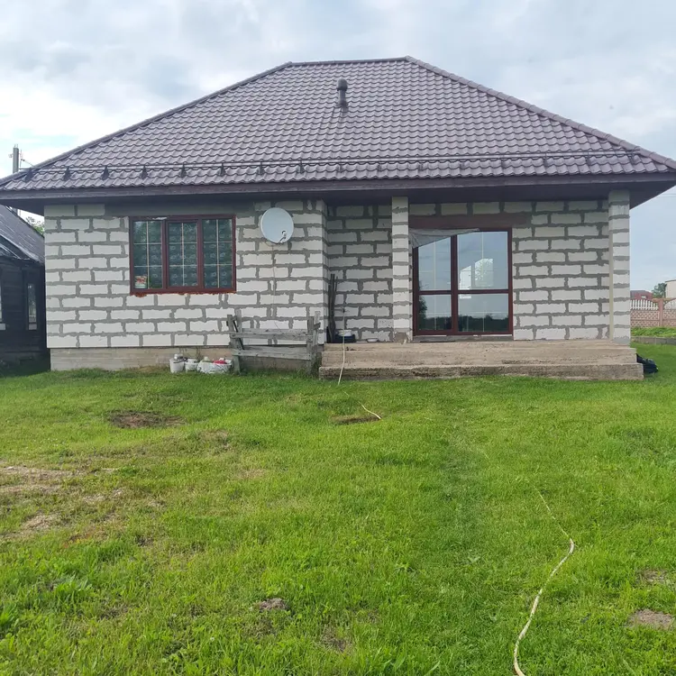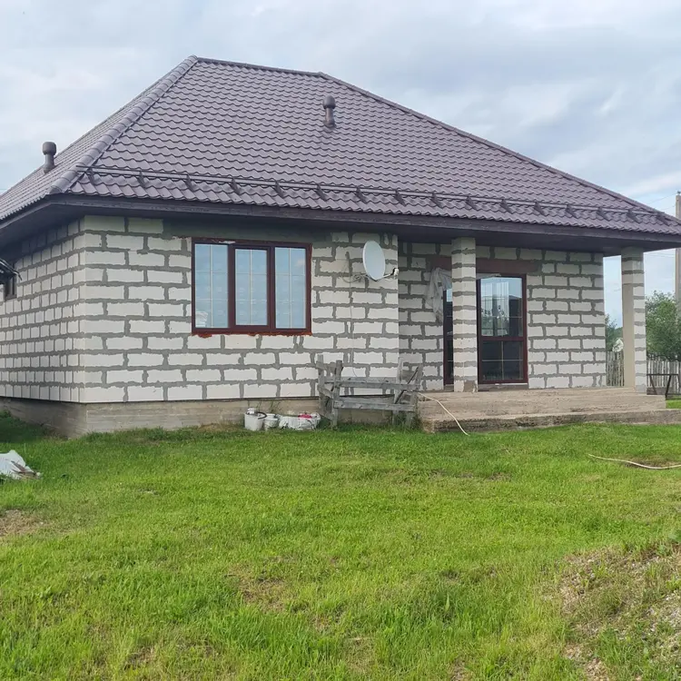 Продается одноэтажный дом с гостиной, террасой, 2-мя спальнями, топочной и кухней.