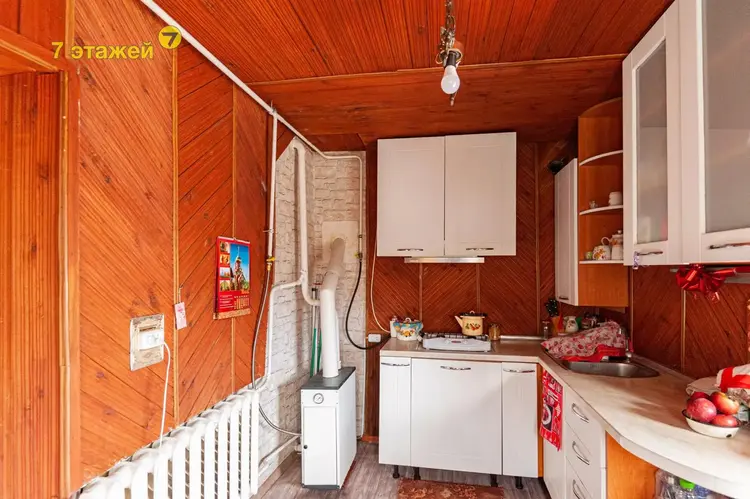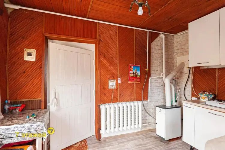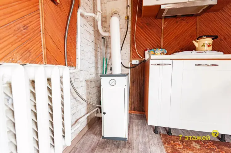 В доме 54.3 м2 четыре жилые комнаты, три из которых изолированы. Кухня с газовой плитой, газовым котлом и умывальником. .