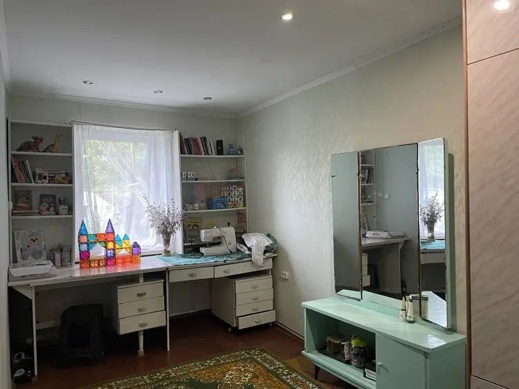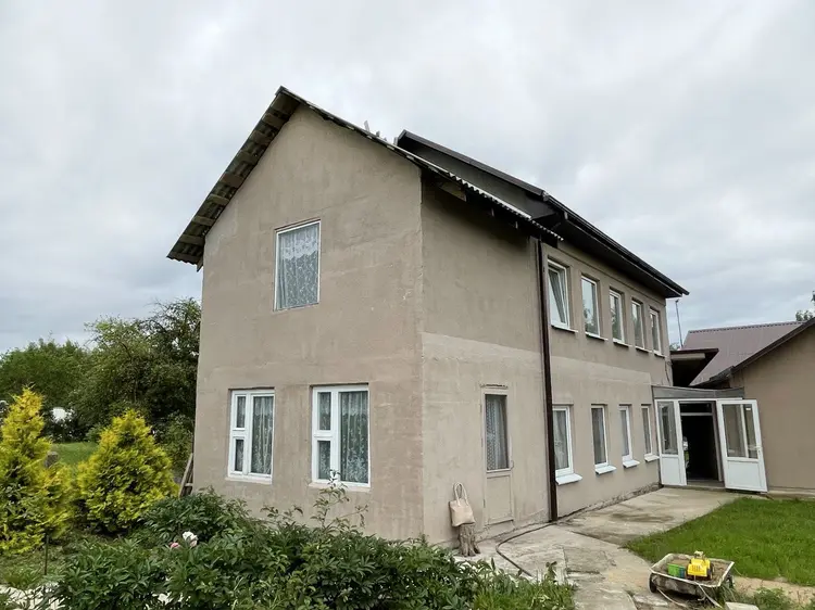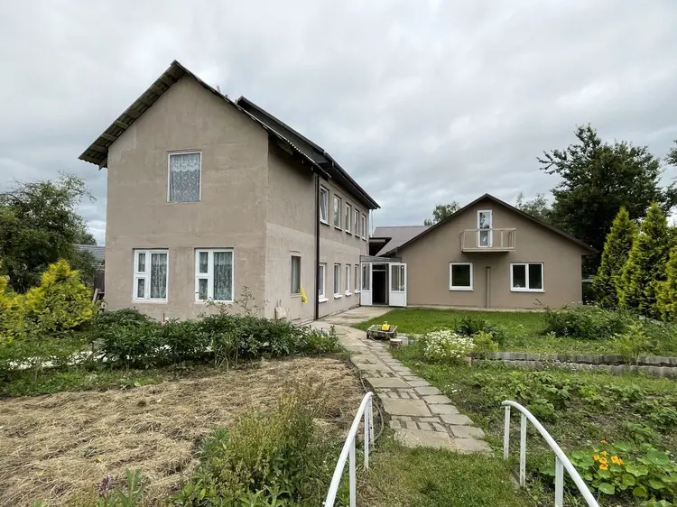 Дом состоит из 4-х жилых комнат, кухни - 12,8 кв. м, просторной прихожей - 14.7 кв. м и раздельного с/узла. Дом выполнен из бруса, а две жилые пристройки (без ремонта) с отдельными входами - из г/с блоков. Каждая из жилых пристроек имеет помещения под кухню, отдельный с/у, гардеробные и просторные комнаты.