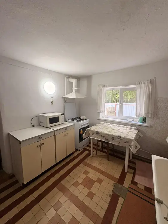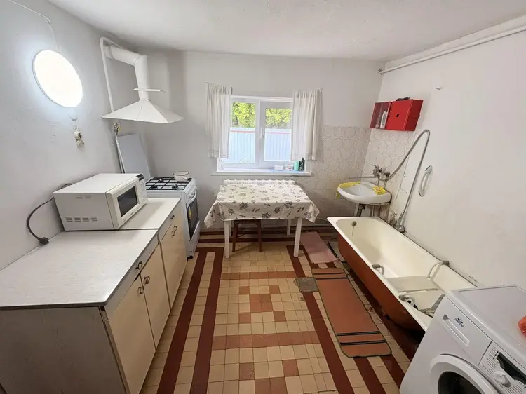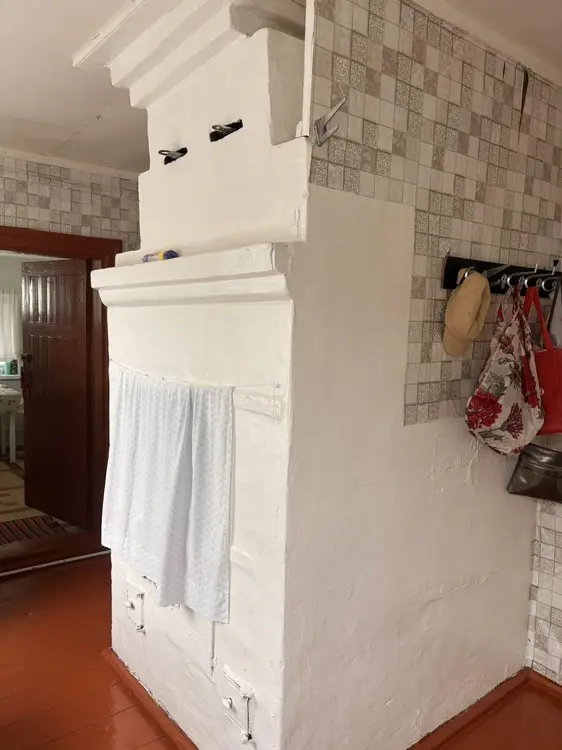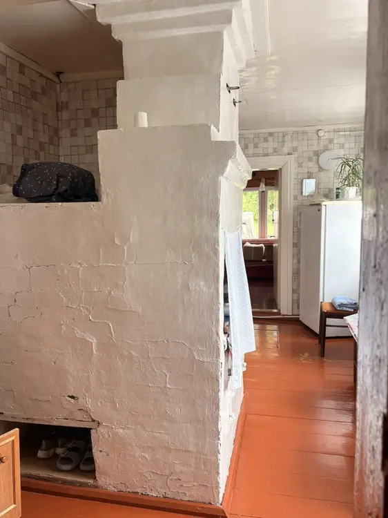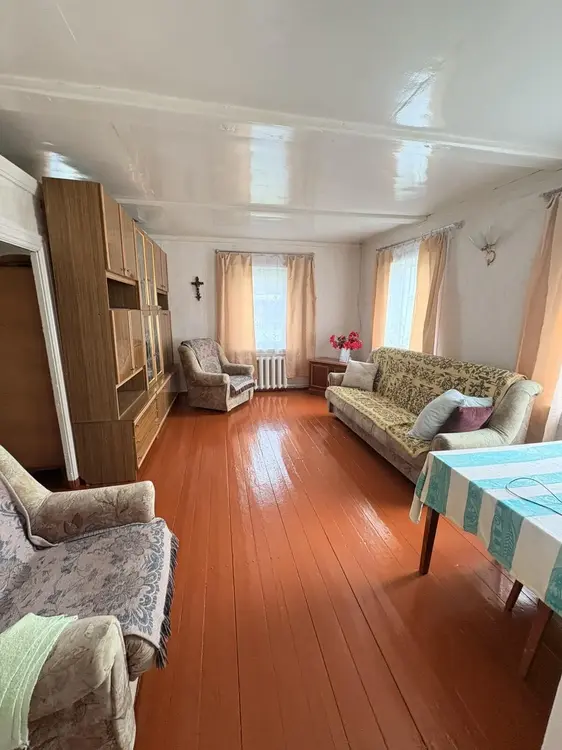 Добротный ухоженный дом из бревна, обложенного белым кирпичом. Газовое отопление с двухконтурным котлом, центральное водоснабжение, канализация местная. В доме 2 печки, одна из них с лежанкой. Установлены качественные окна ПВХ, металлическая входная дверь, кровля из металла. Дом очень светлый, чистый, сухой. Ухоженный участок правильной формы с большим количеством садовых деревьев и ягодных кустарников. На участке располагаются баня, хозяйственные постройки, погреб, мастерская. Участок огорожен высоким забором из металлопрофиля, а также сеткой рабицей. Хорошие тихие соседи.
