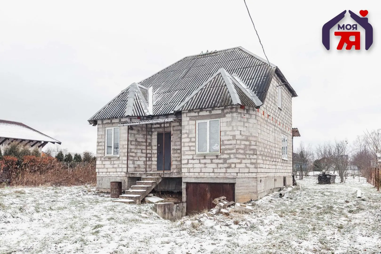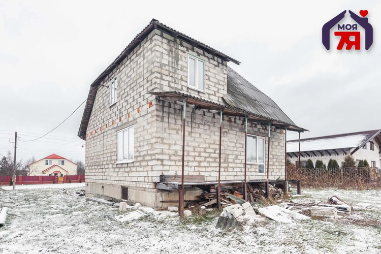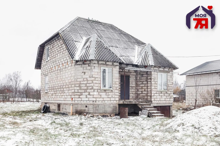 - Готовность к завершению строительства – внутри уже залита черновая стяжка, а также установлена лестница на второй этаж, что значительно упрощает дальнейшие строительные работы. Дом оснащён качественными стеклопакетами, а кровля покрыта шифером, что обеспечит надежную защиту от осадков и холода.
