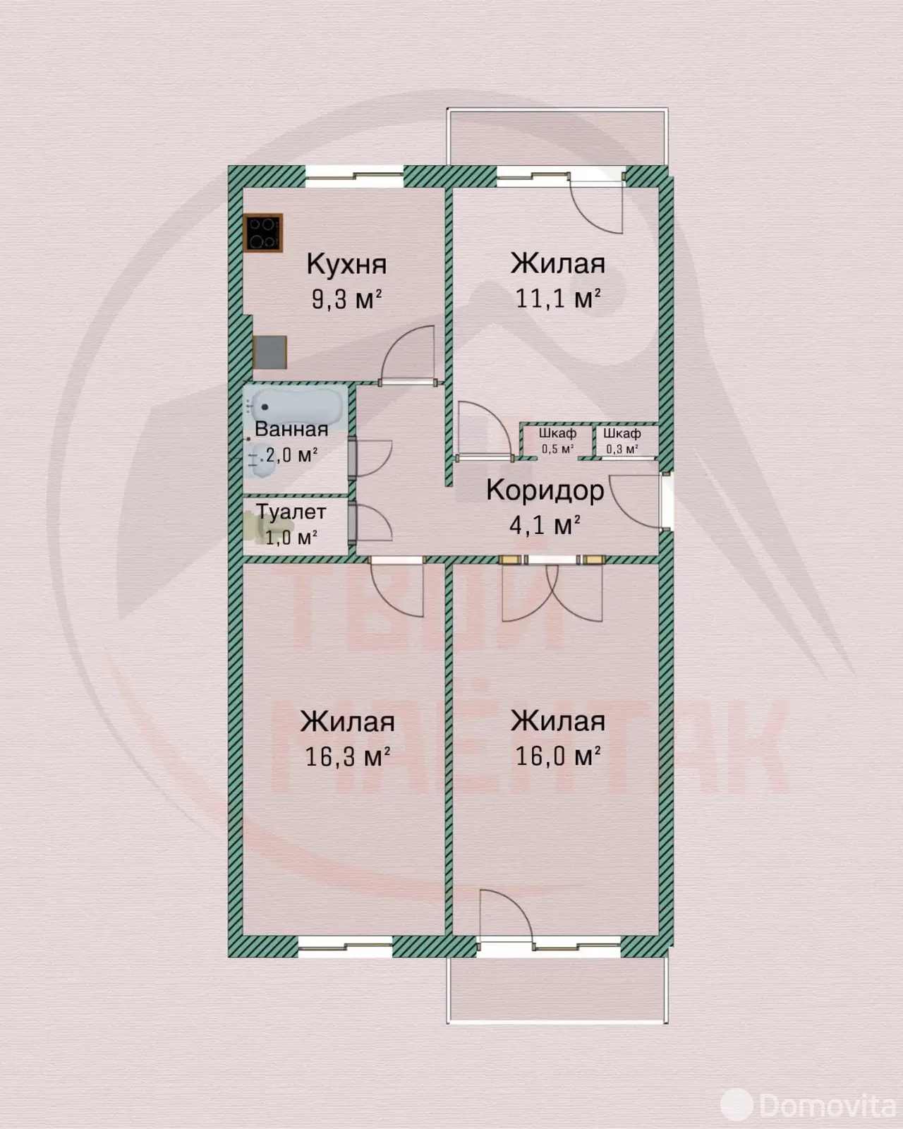 Квартира на две стороны, два балкона, раздельный санузел. На этаже три квартиры.