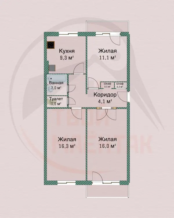 Квартира с видом на две стороны, два балкона, раздельный санузел. На этаже три квартиры.