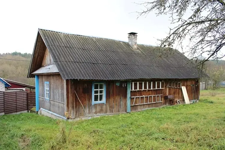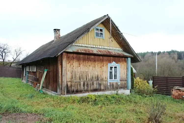 - на участке деревенский дом, который можно использовать на время строительства. Стоит на краю участка и не мешает строительству.