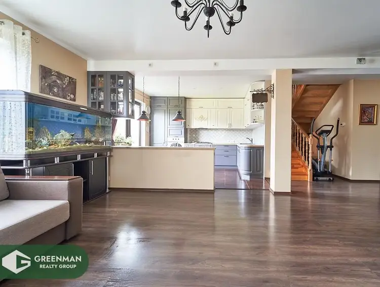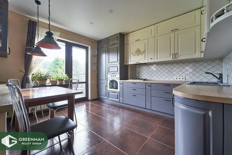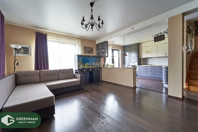 Современная, обустроенная кухня – гостиная 33,2 кв.м., жилая комната 12.1 кв.м., два коридора – 7,2 кв.м. и 4,2 кв.м., топочная – 3,3 кв.м., просторный сан.узлел 9,3 кв.м.,