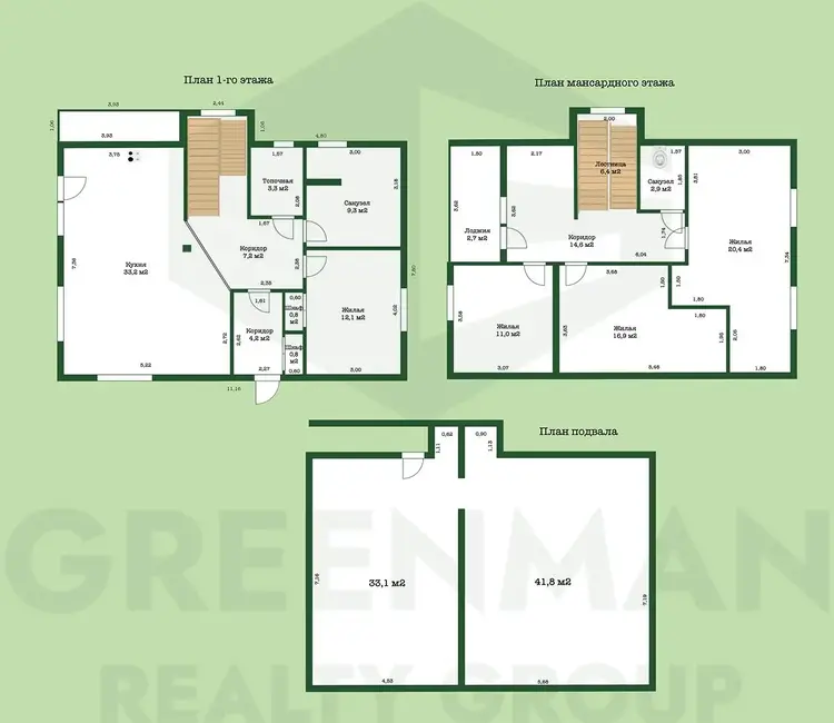 Теплый каркасный дом каркасный, обшит деревом; крыша – мягкая черепица, деревянные энергоэффективные стеклопакеты; обустроенный подвал 33,1кв.м. с кухней и баней 41,8 кв.м.