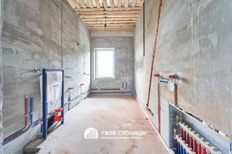 Единственный в своем роде, можно сказать уникальный объект в деревне Медухово, которая расположилась в живописном месте, всего в 25 километрах от Минска по Логойскому направлению.Принимая чашку утреннего кофе у себя на террасе, Вы будете слышать пение птиц, а не ссоры соседей и шум машин. Также не забывайте про великолепные виды и чистый воздух.Давайте вместе разбираться, что из себя представляет данное предложение:двухэтажный современный дом, который был построен в 2023 году. При возведении стен использовались газосиликатные блоки с утеплением, которое обладает высокими изоляционными свойствами и экологичностью. При устройстве кровли была использована металлочерепица. Фасад облицован клинкерной плиткой. Общая площадь - 288.4 м.кв., из которых 128.1 м.кв. - жилая. Продуманная планировка: на первом этаже расположились огромная гостиная с кухней 21 м.кв., санузел, котельная, погреб, две прихожие, гараж и терраса с шикарным видом; на втором этаже - 5 изолированных жилых комнат с большим количеством света и санузел. Здесь уже всё готово под чистовые работы, ведь уже выполнена качественная черновая отделка: стены и перегородки оштукатурены, чистовая стяжка пола, разводка электрики: выключатели и розетки, радиаторы отопления с терморегуляторами. В санузлах уже установлена инсталляция. На первом этаже уже смонтирован теплый пол по немецкой технологии.Если Вы думаете, что это всё, то хочу Вас обрадовать - это далеко не так. А как насчет участка 20 соток, который находится в частной собственности? Участок частично обнесен забором на монолитном фундаменте. Коммуникации:собственная скважина, глубина которой достигает более 100 метров. Установлены фильтры для обезжелезивания и смягчения воды;в первом доме установлен одноконтурный газовый котёл;канализация местная со станцией очистки;дополнительно сделана ливневая канализация;электроснабжение с напряжением 380 вольт.Рядом лесной массив. А до горнолыжного спортивно-оздоровительного комплекса Логойск всего 1.5 километра.Хорошие подъездные пути. Регулярное транспортное сообщение с Минском. На машине до МКАДа можно добраться за 20 минут.Прекрасное, тихое место как для жизни и отдыха, так и для ведения бизнеса.Если вас заинтересовал данный объект, то звоните! Не упустите возможность стать его владельцем! ООО "Твоя столица", УНП 101136973, лицензия №02240/15 от 17.02.05г.