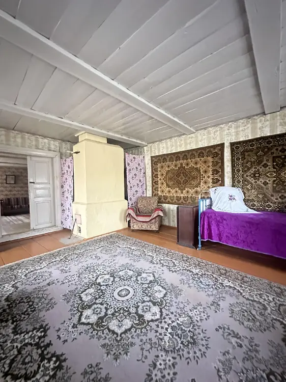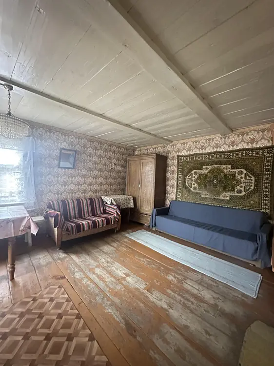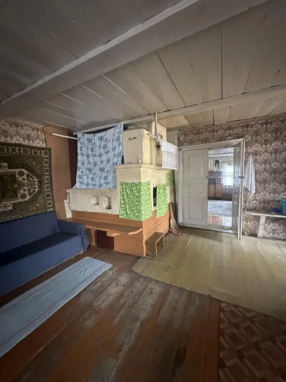 Дом общей площадью 62 м.кв., печное отопление, газовая труба по улице, есть электричество, рядом колодец. На участке расположены хозпостройки, погреб, сад. Окна деревянные, крыша шифер.