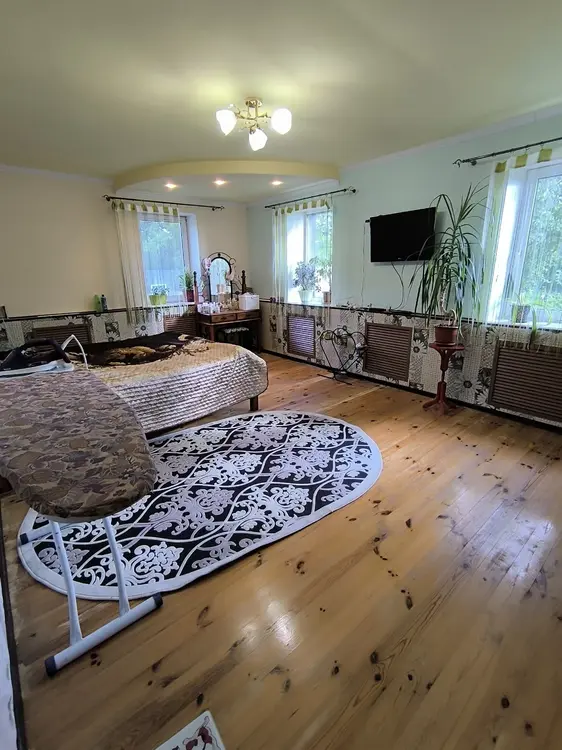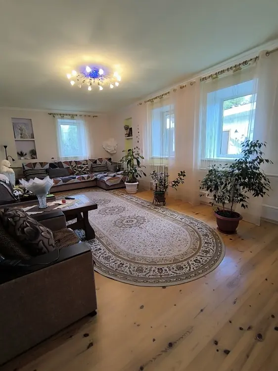 Дом кирпичный 1972 года постройки, пристройка 2008 года. Крыша шифер, окна ПВХ, пол деревянный, в кухне и санузеле плитка керамическая. В доме 5 комнат, кухня 14 м², санузел в доме раздельный. Электроснабжение есть, отопление газовое (котёл юнкерс), водоснабжение- скважина новая (более 20 м глубина) + насосная станция, канализация местная (выгребная яма, кольца ж/б).
