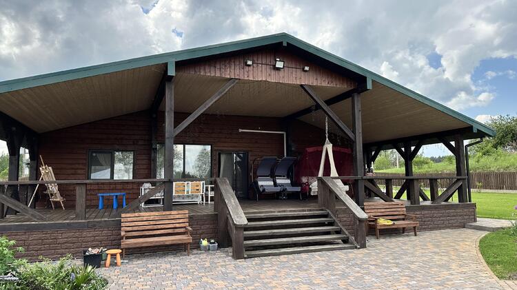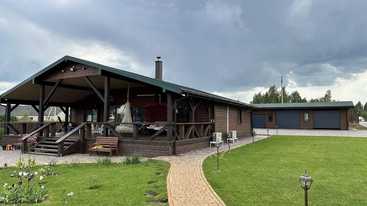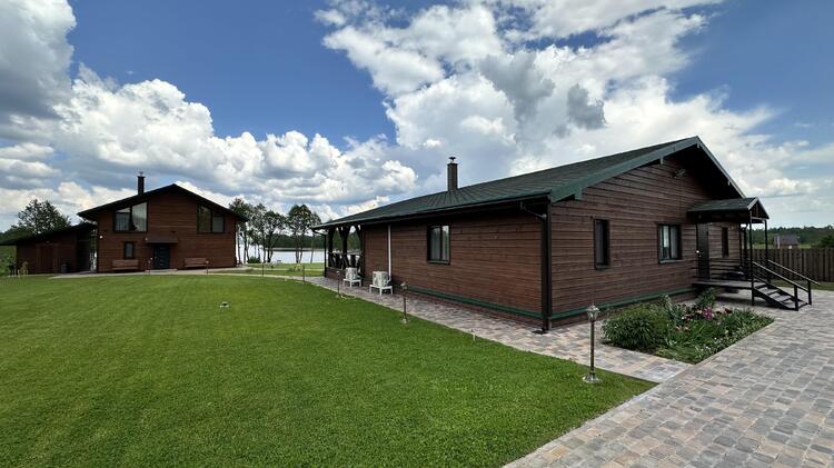 Продуманное до мелочей планировочное решение, разработанное по индивидуальному проекту. Комплекс состоит из двух отдельно стоящих зданий у каждого из которых есть свой хоз.блок. Одноэтажного дома и двух этажного комплекса с хорошей просторной баней.