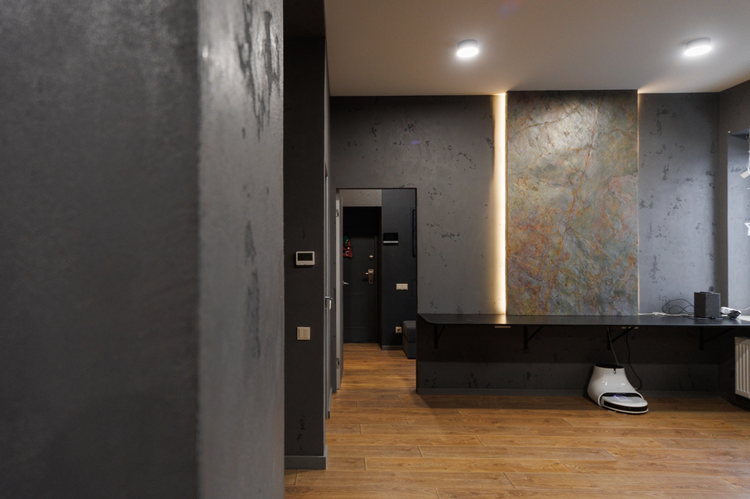 В декоре использована Итальянская плитка, декоративная штукатурка, стены окрашены.