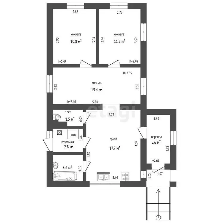 В доме две раздельные комнаты - 10.8/ 11.2 кв.м., гостиная – 15.4 кв.м, кухня – 17.7 кв.м., веранда – 5.6 кв.м., погреб оборудован стеллажами. На кухне, в с/у и во входной части – теплый пол, плитка, стены гипсокартон, выровнены и окрашены, на потолке пластиковые панели. В комнатах на полу ламинат, оклеены обои, потолок гипсокартон. Так же есть возможность сделать комнату на мансардном этаже. Проведен интернет высокоскоростной (оптоволокно).