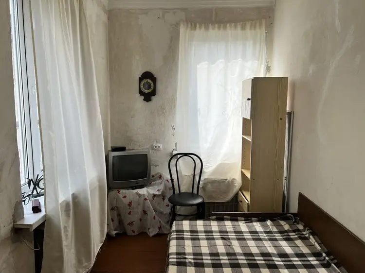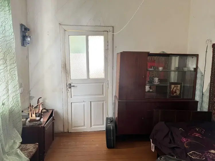 Коммуникации: вода центральная – введена в соседней части дома, канализация местная, газ и котел (старый советского производства), батареи есть в доме, в рабочем состоянии.