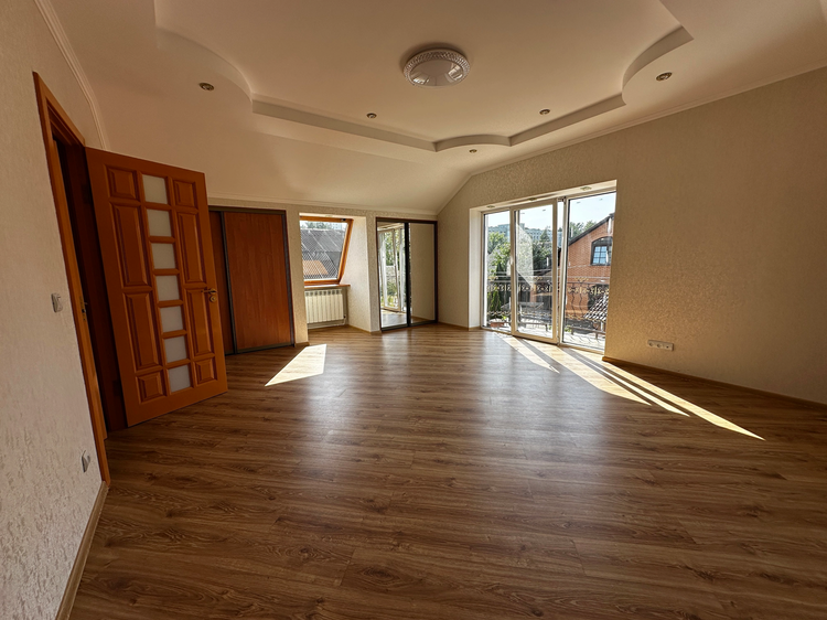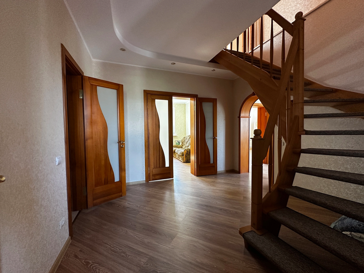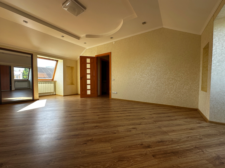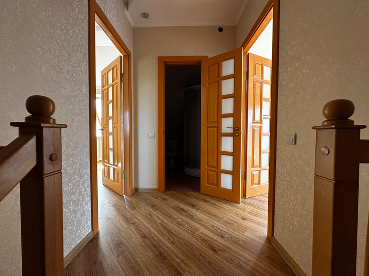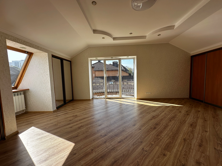 Просторный дом общей площадью 140 кв. м., с 4 комнатами, отдельной кухней 16,3 кв. м. и двумя санузлами, а также гостевым домом площадью 91 кв. м. с террасой 17 кв. м., мансардой, сауной и камином, гаражом на 2 авто и просторным подвалом.