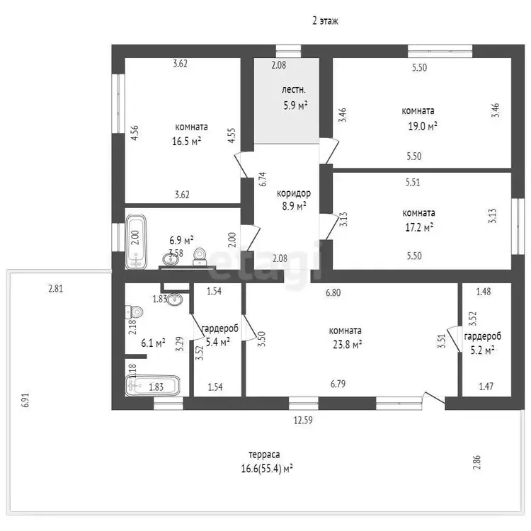 На втором этаже расположены 3 уютные спальни 16.5 м.кв., 17.2 м.кв., комната отдыха 19 м.кв., мастер-спальня 23.8 м.кв. с собственным с/у и двумя гардеробными, с панорамным остеклением и выходом на роскошную террасу 55.4 м.кв., где можно наслаждаться утренним кофе или вечерними закатами, окружёнными красотой природы.