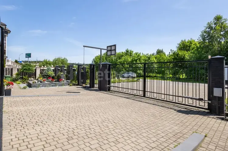 Участок 8.14 сот. в частной собственности, по периметру огорожен металлическим забором, ворота на электроприводе. Ландшафтный дизайн участка гармонично дополняет архитектуру дома, создавая уютный оазис для отдыха. Пруд и фонтан придают ландшафту изысканный вид, а ухоженные кустарники и деревья создают атмосферу уединения и спокойствия