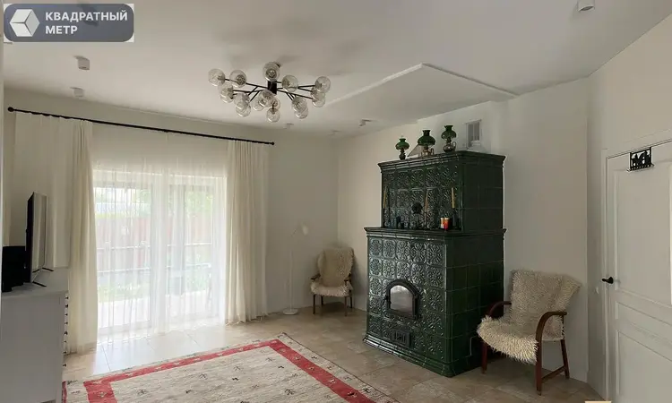 В гостиной расположена, печка изразцовая с возможностью приготовления пищи. Также с гостиной есть отдельный выход на террасу.