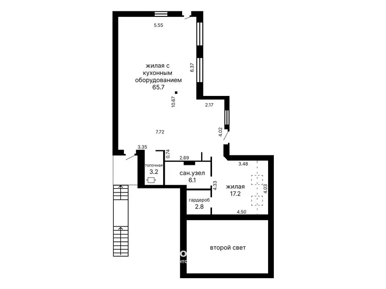 Второй этаж — полностью автономное пространство с отдельным входом с улицы.