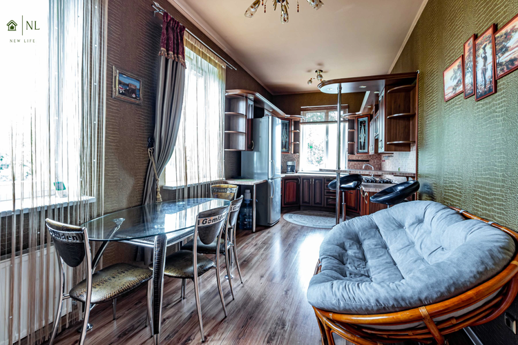Описание дома: Коттедж состоит из трех уровней и предлагает два отдельных входа, включая выход в гараж. На первом этаже расположены кухня, три изолированные комнаты, гараж и топочная. Второй этаж включает еще одну кухню, три изолированные комнаты и просторную террасу площадью 11.9 кв.м, с которой открывается живописный вид на окрестности. В доме предусмотрены два санузла и две полностью оборудованные кухни с необходимой техникой.