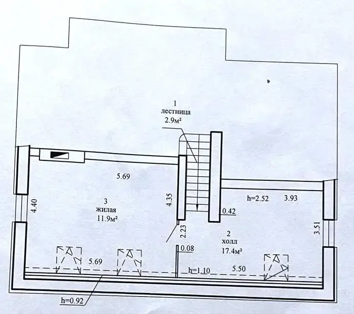 Первый этаж: Тамбур (4,2 кв.м) и лестница которая ведет на 2 жилой этаж и цокольный этаж.