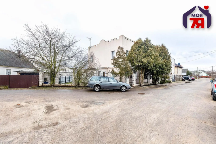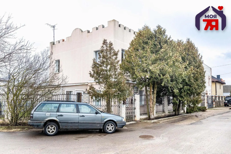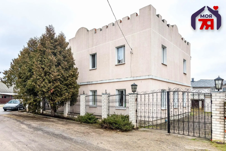 -Просторный двухэтажный кирпичный дом 1995 года постройки с оригинальным дизайном – фасад с элементами замковой архитектуры делает его особенным и выделяет среди других построек.