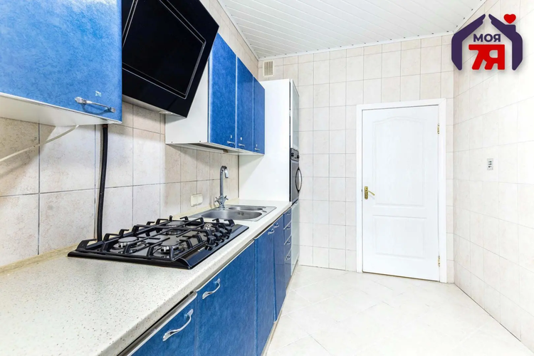 -Кухня – просторная и функциональная, оборудована гарнитуром с удобной системой хранения, варочной панелью и вытяжкой. Большое окно обеспечивает хорошее естественное освещение.