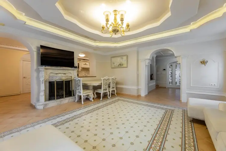 Общая площадь дома составляет 482,3 м2: пять просторных жилых комнат, большая кухня, гостиная с каминном, 3 санузла, баня с парилкой, тренажёрный зал, русский бильярд. Удобная планировка с отлично организованным пространством. Выполнен высококачественный ремонт с использованием качественных и дорогостоящих материалов. Каждый элемент интерьера выполнен с безупречным вкусом и любовью к деталям.