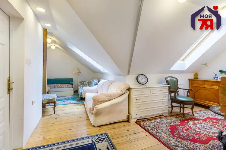 - Общая площадь дома составляет 340,9 м2 : 3 уровня + мансардный этаж, санузлы на каждом этаже. Удобная планировка позволяющая по разному организовать пространство.