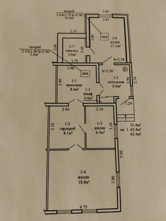 63.4 м2
