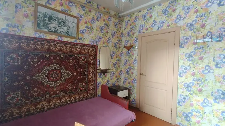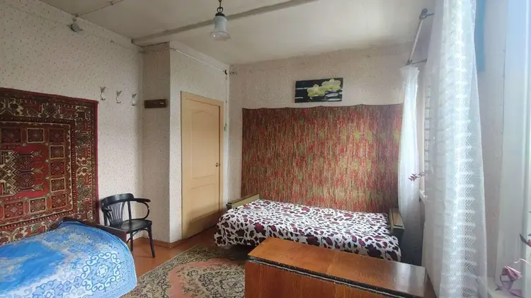 Потолок -деревянный. Полы - дощатые. Стены - обои.