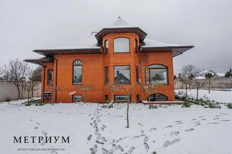 Экологичный, светлый, теплый и обустроенный дом площадью 385.4 м2 из красного облицовочного кирпича, изогнутой крышей с окнами - покрытие финский “KATEPAL” – надежность и эстетика на десятилетия. Досконально продуманный проект и зонирование пространства.