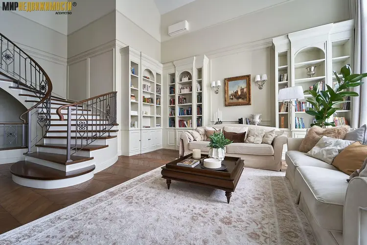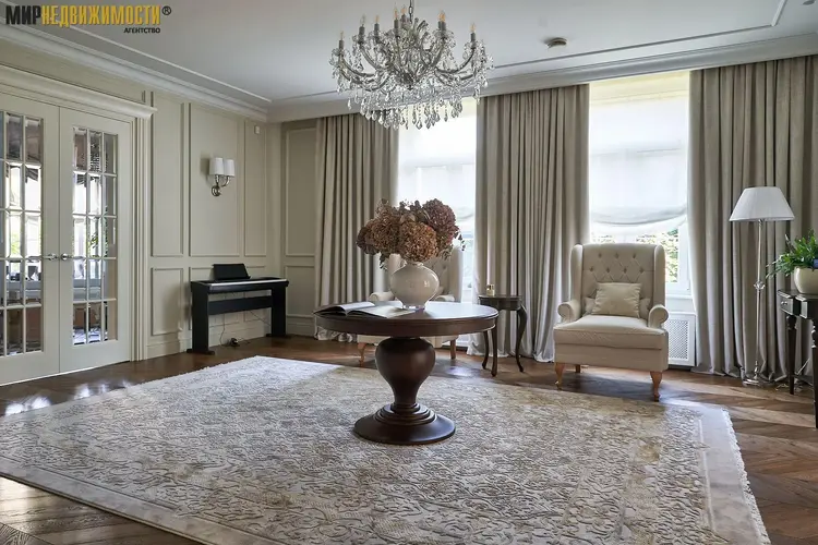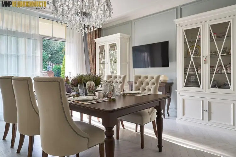 Дом гармонично сочетает в себе роскошь и функциональность. Высота потолков от 3,5 м до 6м. На 1 этаже расположены прихожая, гостиная, кухня (массив), укомплектована техникой итальянского производителя SMEG, с/у, спальня и гардеробная. 2 этаж – 2 спальни, 2 с/у, гардеробная, терраса. 3 этаж - 2 спальни, кабинет, с/у, терраса. В цокольном этаже расположены кинозал, спортзал, комната для хранения со стеллажами (40 м2), постирочная, оборудованная двумя стиральными машинами.