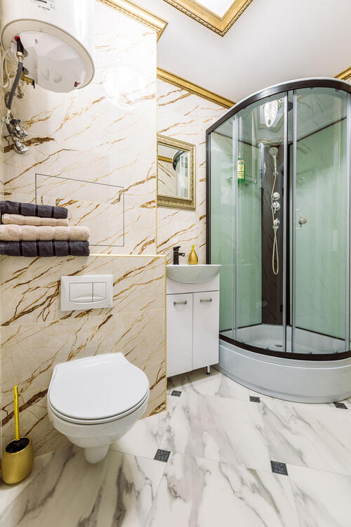 СУПЕР ванная комната с душевой кабиной . Кондиционер , Музыка , Гидромассаж и другие удобства.