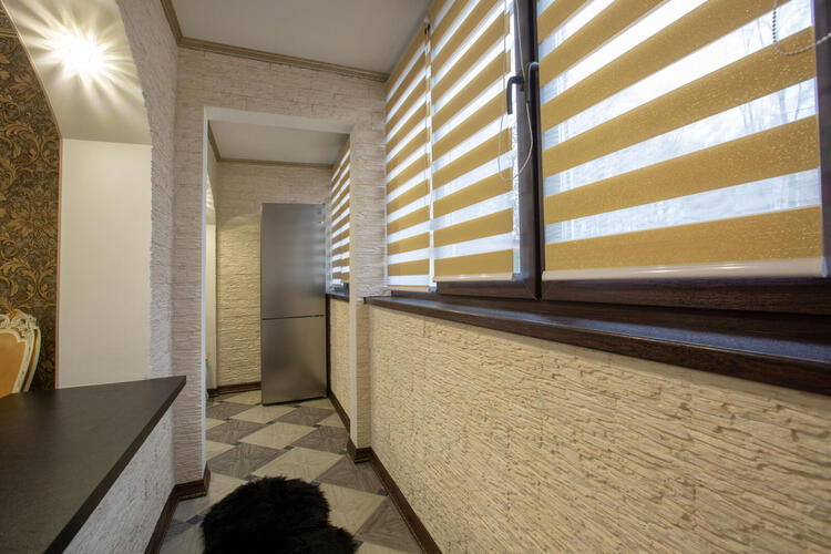 Открытая Двойная лоджия , с прямым выходом на кухню и комнату .